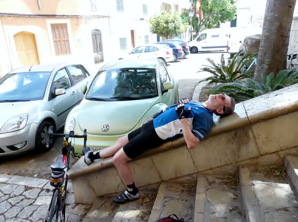Alastair and I were away by 08.30, an hour before the others and this gave us quite a lot of extra ‘cool riding’. Nice rural roads to Caimari and a lovely shady route to the mountains. Then came THE BIG ONE. This amazing road descends to sea level from about 600m to sea level and is a remarkable feat of engineering. The descent is steep and needing a lot of concentration. It was also very hot. The bottom is a tourist trap and a cyclist’s trap, once you are down there the only way is up. We got ourselves ready for the climb with a large Zumo de Naranja and a coffee. It’s rare for me to be intimidated by a climb but I was for this one, mainly because it was so hot and also because I didn’t feel 100% recovered from the previous week’s stomach bug. It was hard, it was hot and I set myself the target of 15mins cycling and 10 mins rest, each time stopped I made sure I had a good drink. This worked well and I made slow progress up the climb and the famous spiral road arrived sooner than expected. I was soon sitting in the cafe at the junction with the MA10 having a coffee. I had done Sa Calobra (Col de Reis), words cannot adequately describe this climb and it is definitely on the list of top things to do if you are a road cyclist. It was really done too late in the day and was very hot and clogged with tourist buses, next time it will be at dawn. The road home is far from flat and we arrived back at Pollenca tired and happy in time for a cool beer and dinner. A truly awesome day that will long be remembered.One Every Raod Cyclist ‘must-do’ List