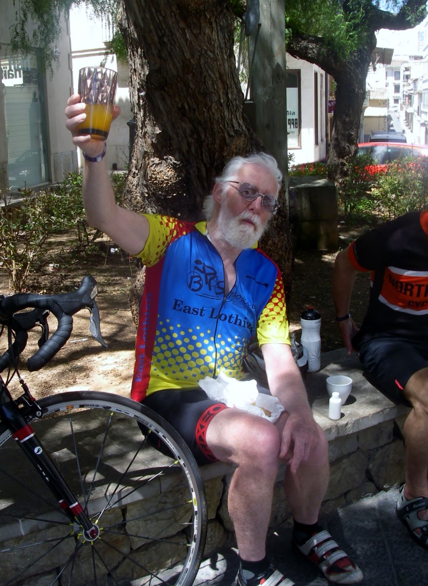 Everywhere geared up for cyclists, many roads are quiet and those that don’t generally have a good cycle lane so you feel safe. Road surfaces are generally very good and drivers very patient and understanding. Going from a cool Scotland to 30+ degree heat was a bit of a shock and it took a couple of days to get acclimatised. Acclimatisation wasn’t helped by my slow recovery from a stomach bug a few days earlier that left me weaker than usual. trying to look after my skin I put on factor 30 (once a day) lotion at the start of each day and two applications of factor 50 during the ride and thus avoided sunburn. I took and drank 1.5 litres of water each day plus any liquid consumed at coffee stops. Their coffee is good as is the orange juice (Zumo) which generally freshly squeezed. There are bike hire shops in most towns and if you are an ‘average’ cyclist make sure you get a 32 tooth sprocket and a compact chainset if going to the mountains. There are huge groups of cyclists everywhere which may seem a bit intimidating at the start but actually gives a good atmosphere, even a toilet stop at the side of the road elicits from passing cyclists the question, “are you OK?”. The scenery is sublime and impressive and it’s not far away from cyclists heaven.The memories of the warmth, great cycling and food combined with good company keep me going on the dark dreich winter days in the Highlands of Scotland.