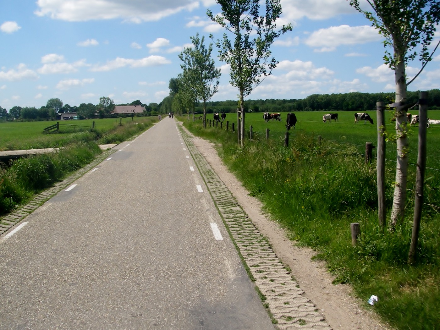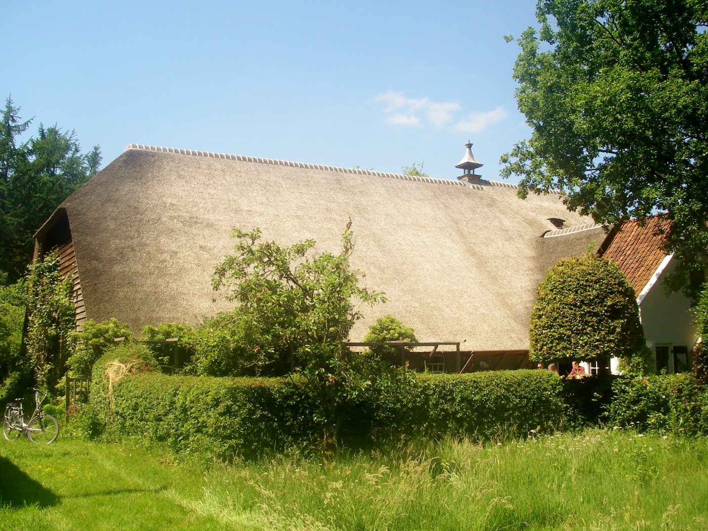 Next morning dawned warm andsunny, the pattern for the next few days. Breakfast was brought to us by Ellie in a wheelbarrow next morning; she delivers a box full of all sorts of ‘goodies’. The table is set for us and we are left with warm rolls, hot coffee, hard boiled eggs and all sorts of ham, cheese and sweet things, a wonderful breakfast. After we had finished everything was piled into the box for collection later, what a brilliant system. The purpose of this trip (apart from visiting Holland for the first time) was to celebrate a family ‘big birthday’ and to meet Dutch friends and relatives. This was taking place at an old farm house about 3 miles from Leersum so we set off to walk there. After the previous days thunderstorm, it was much cooler and a lovely day, perfect for walking. My vision of Holland was, stereotypically, flat fields, canals and windmills but this was very different being heavily wooded, so we had a pleasant walk along a shady country road which is very popular with cyclists and as it was Saturday morning it was busy with all types, from serious racers to families on