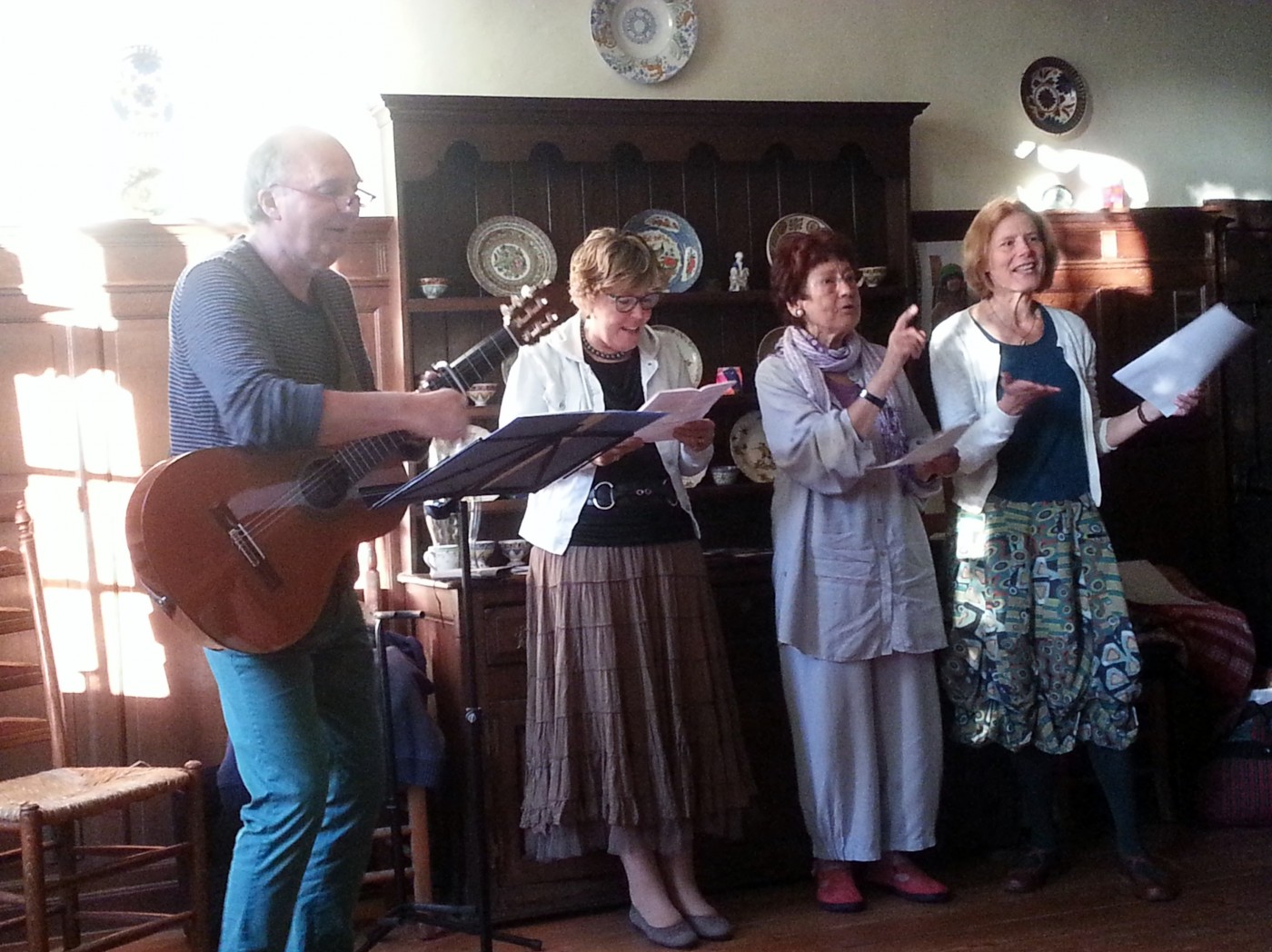 In the afternoon we took our grandson for a walk using the backpack through the shady woods, at fifteen months he is now getting quite heavy to carry, he spotted three tractors, tractor being one of his first words so he wants to practise linking the word to the object. The evening meal was taken outside with everyone around a big table in the sun followed by some interesting entertainment. Later we were kindly given a lift back to our ‘digs’. Most folks were staying at this huge old house which had many rooms and a gigantic thatched roof but we had decided a small B&B would suit us better.