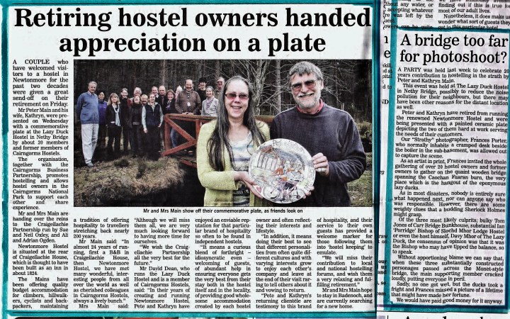 We ran the hostel for 20 years (1992 to 2012) and lived in the village of Newtonmore for 25 years. We miss aspects of village life such as the good friends we left behind and Craigellachie House, where we lived. We don’t miss the cold winters. To have continued would have been unsustainable as we got older; it was time to move on, all things must pass.