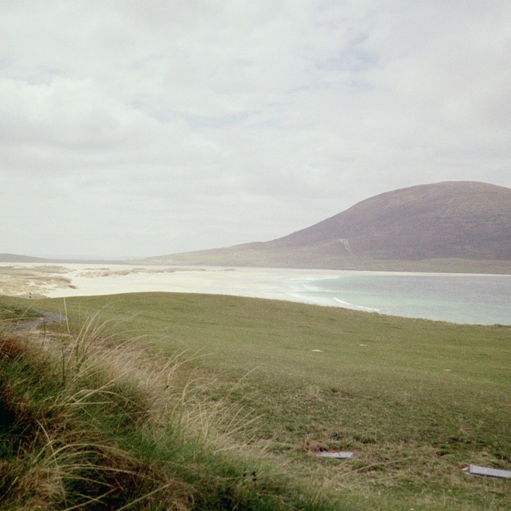 I woke to a strong northeast wind. North East! That really was is not fair. I had planned the journey from south to north because statistically I should have had a tail wind. I headed north towards the ferry to Harris (NA HEARADH). The landscape is amazing, with isolated houses scattered amongst a complicated area of big and small lochs as if a giant had just flung both the houses and the lochs at random. Many of the houses looked empty and I wondered why they had been built and how anyone could have survived living there. The wind must be fearsome in winter. As North Uist ended the landscape become gentler with fine views, short grassland and sandy beaches. The ferry once left from North Uist but now runs from Berneray (BERNARAIGH) at the end of another new causeway. The Lobster Pot Tea Room filled a convenient half hour while I awaited its arrival. The sea was rough, the boat smooth and the crossing interesting. It was good to hear announcements on the boat made in Gaelic as well as English. I spent most of the crossing talking to a doctor who was travelling the entire length of the islands (including two ferry crossings) just to attend a meeting in Stornoway; life is certainly different out here. He offered me a lift but I declined. Was this a wise decision? Once on Harris the hard work started. The mountains there are steep and bare and the beaches stunning. I stopped near Horgabost and walked the length of the beach in bare feet. My feet turned blue with the cold and were sandblasted by windblown sand. However, I did have the whole beach to myself and there was no litter anywhere. I became aware that I had left the Catholic islands when I spotted several notices forbidding most Sunday activities apart from breathing.