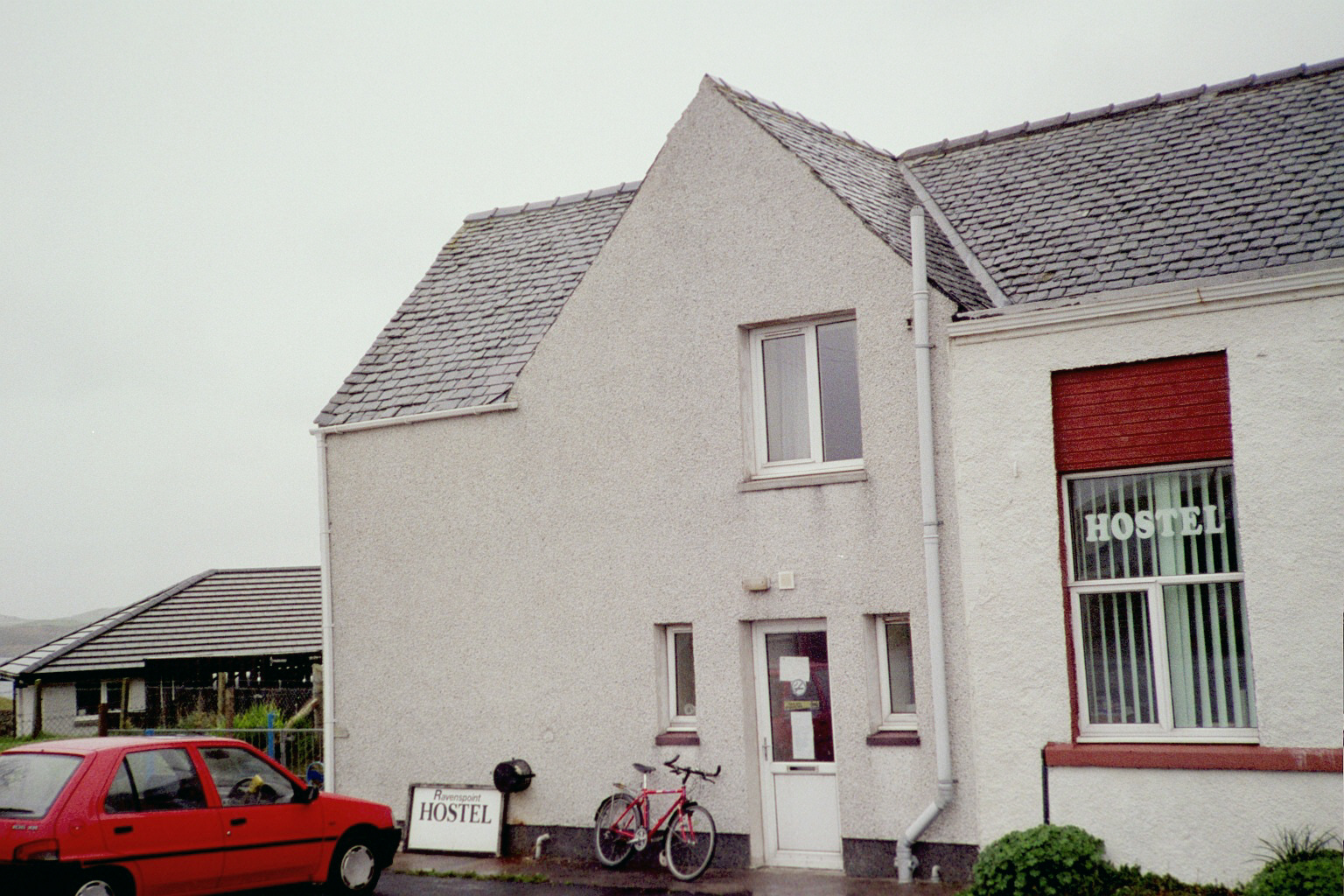 The road to Tarbert (TAIRBERT) was steep and the wind strong and still from the north. These mountains (and they are mountains) may not be high by Scottish standards but they do start from sea level. At least it was not raining and I pressed on, arriving at Tarbert feeling really tired at 3pm. The Harris Hotel hit the spot with a baked potato & salad, cake and tea. I decided to carry on despite my fatigue and the next possible stop being several hours away. The forecast of heavy rain next morning was the main incentive. The road north is known locally as ‘The Clisham’ and it is one huge hill. I got up it without walking (just). After an hour I needed a short rest and I spent miles looking for somewhere, anywhere, to find shelter from the wind. In the end I found a grotty quarry. At last, the Kershader sign appeared but the six miles to Kershader on the side of Loch Erisort seemed never ending. I was very tired and crawled along at 6 mph into the wind. At last, nearly 12 hours after leaving Lochmaddy I staggered into a superb wee hostel run by a local crofter (it is vaguely connected to SYHA but I saw no evidence of it). It had taken me 7 hours cycling time to do 60 miles. My feet, legs, knees and back all ached like hell. The hostel had everything needed to be warm and comfortable, but despite SYHA saying it belongs to the Cyclists Welcome scheme I had to leave my bike outside round the back and it rained most of the night. The boss himself called in very briefly to collect money and told us to pull the door shut when leaving. I passed a pleasant hour with two lads who had been hill walking and then fell into a deep sleep.